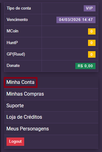 1º - Você deve se direcionar ao painel e clicar em "Minha conta"