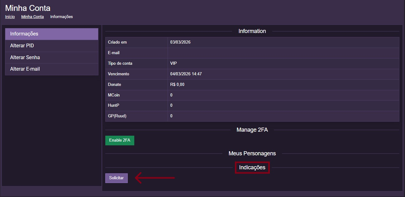 Para cada jogador que você indicar e esse jogador donatar qualquer valor, você receberá 5% de cashback! Você poderá comprar VIPs, MCOINs ou pacotes em nosso site.