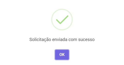Prontinho! Você deverá receber uma mensagem de sucesso ao final da solicitação: